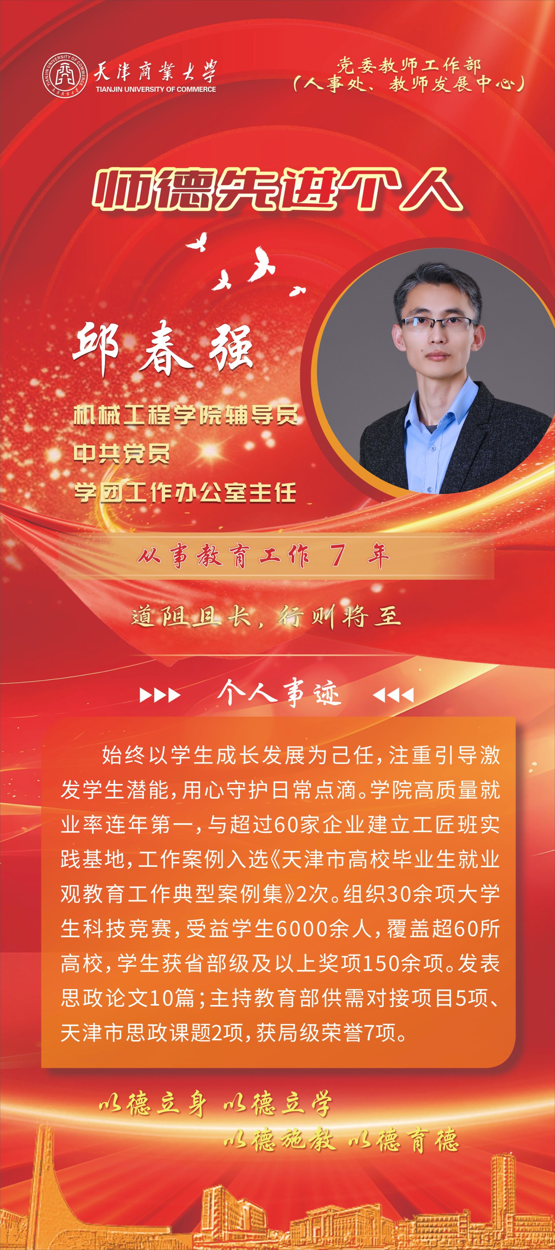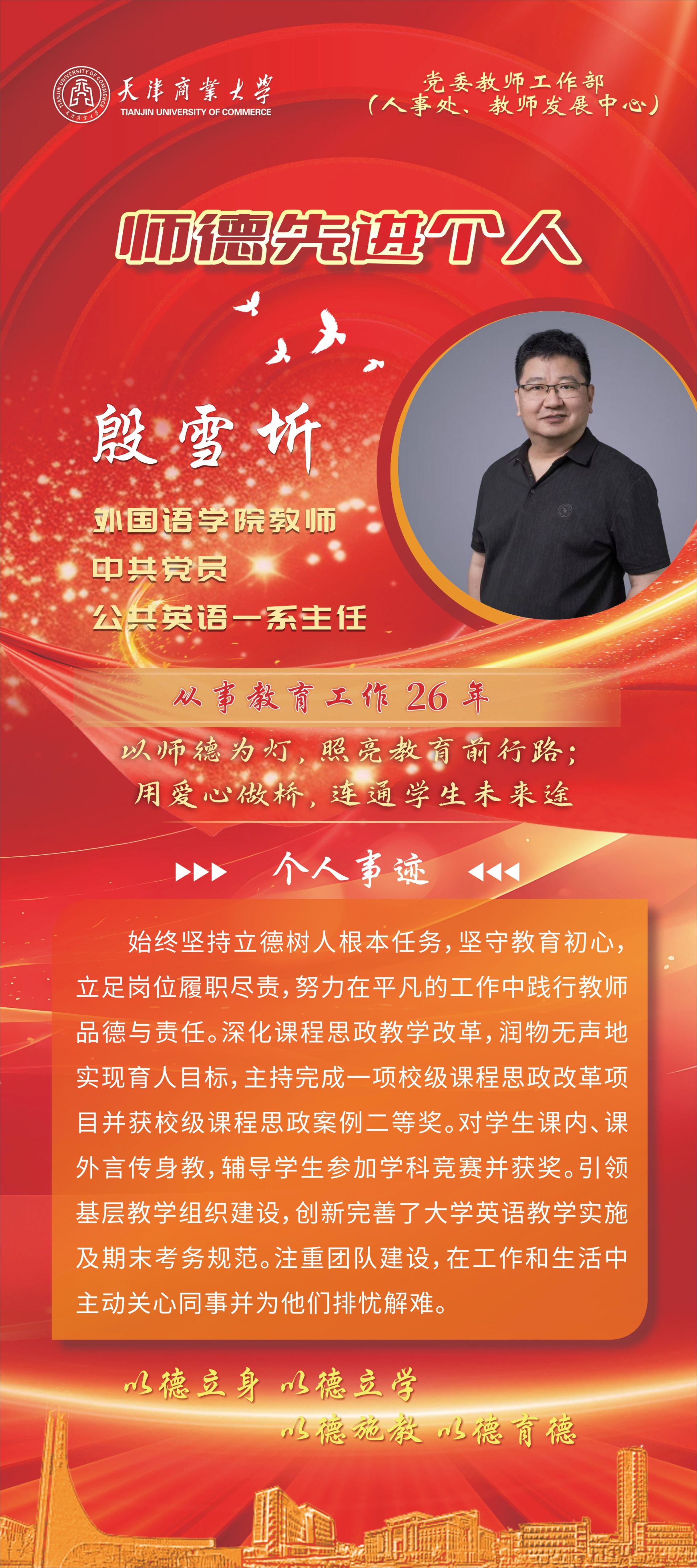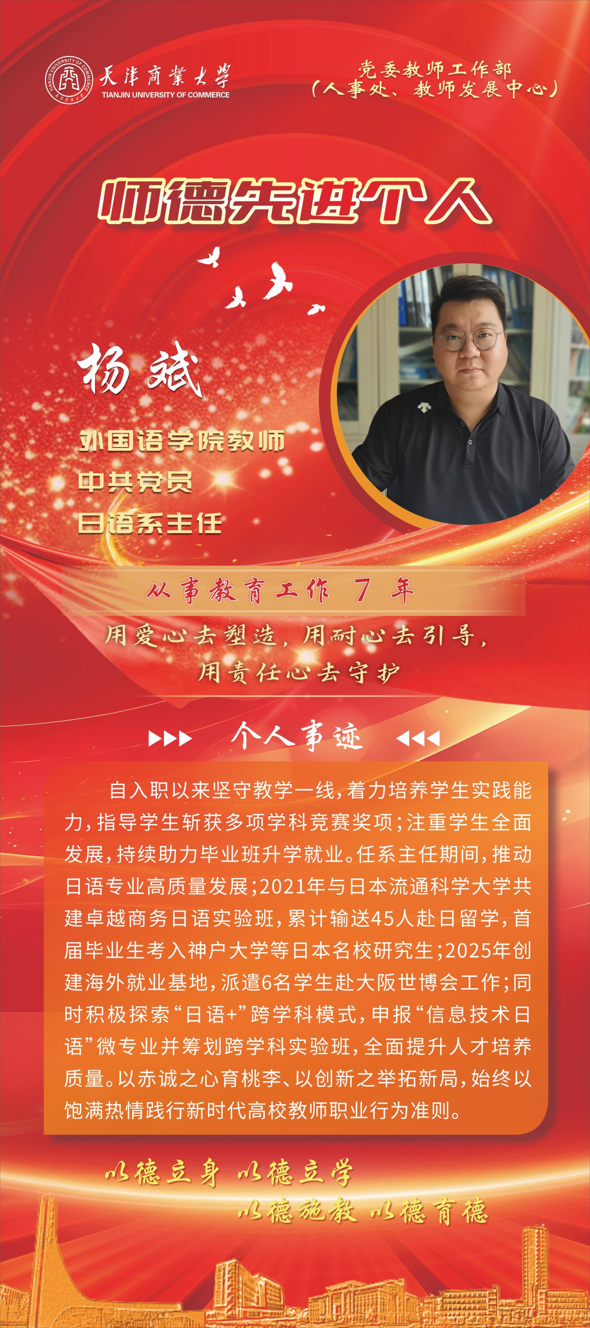 为大力弘扬教育家精神,选树表彰师德先进典型,营造尊师重教良好风气,促进师德师风建设,培养造就学校高素质教师队伍,学校评选出10名师德标兵,20名师德先进个人,表彰他们在教书育人工作中的无私奉献与卓越成就,激励全体教师见贤思齐、踔厉奋发。希望全体教师坚守为党育人、为国育才的初心使命,以教育家精神为引领,在新时代教育强国建设的伟大征程中展现天商教师的新担当、新作为!